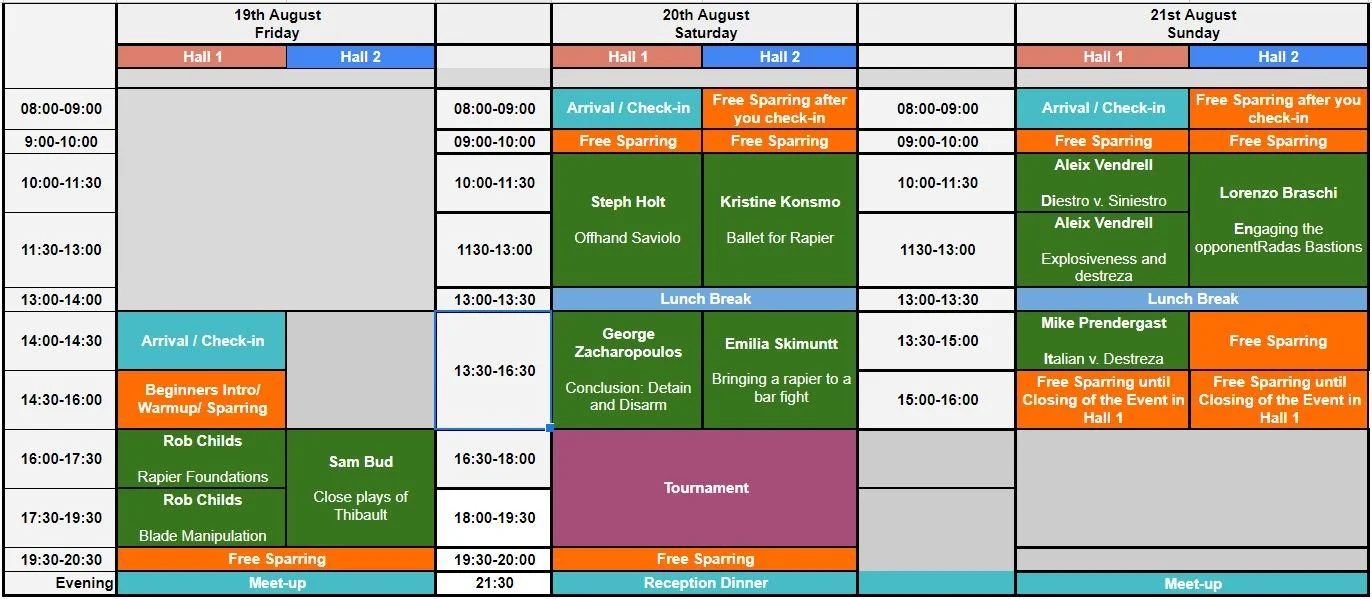 3 days of rapier madness from August 19th to 21st, Friday to Sunday.